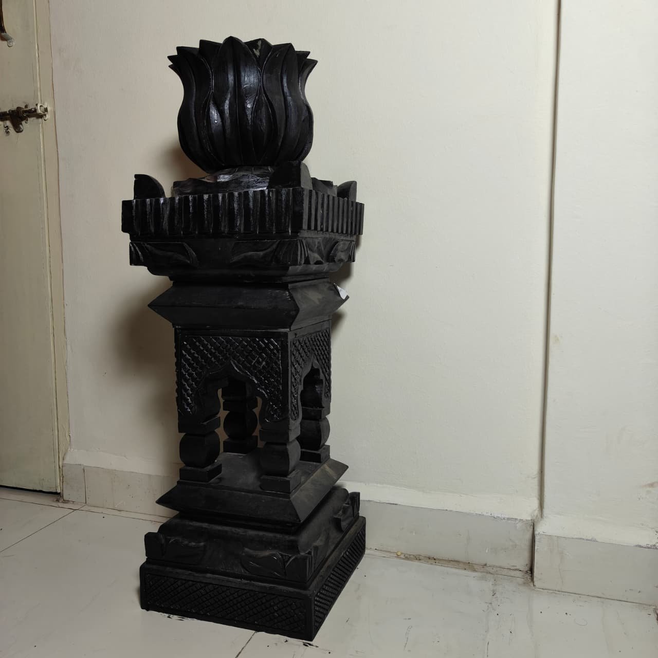 The 3 Feet Traditional Handcrafted Black Basalt Stone Tulsi Vrundawan embodies the rich heritage and commitment to artisanal excellence. Carved from natural basalt stone, this Vrundawan offers stunning durability while showcasing intricate detailing that reflects traditional craftsmanship. The rich black colour paint finish adds a sophisticated touch, ensuring that this piece seamlessly fits into both modern and classic spaces.