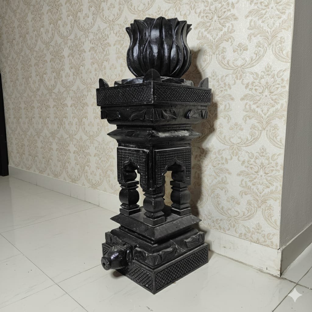 The 3 Feet Traditional Handcrafted Go-Mukh Black Basalt Stone Tulsi Vrundawan is more than just a decorative piece; it is a symbol of devotion and serenity that adds a timeless appeal to your home or garden. Meticulously carved from high-quality black basalt stone, this Tulsi Vrindavan embodies tradition and craftsmanship at its finest, making it an ideal choice for creating a dedicated spiritual sanctuary.
